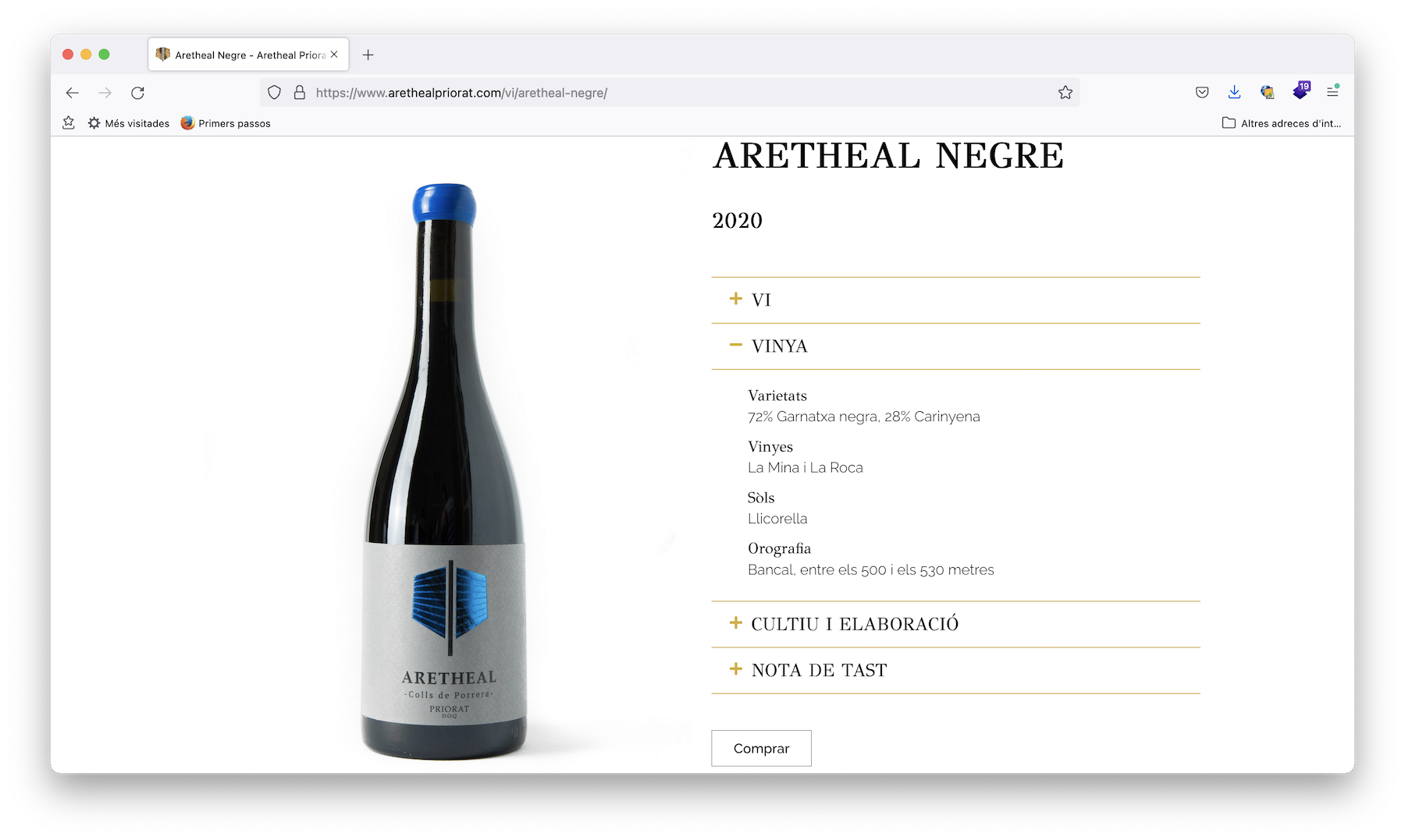 En este sentido, la web expone de manera muy limpia y delicada la esencia de Aretheal, con una presentación muy cuidadosa del proyecto y sus vinos, todo ello con un diseño responsive.