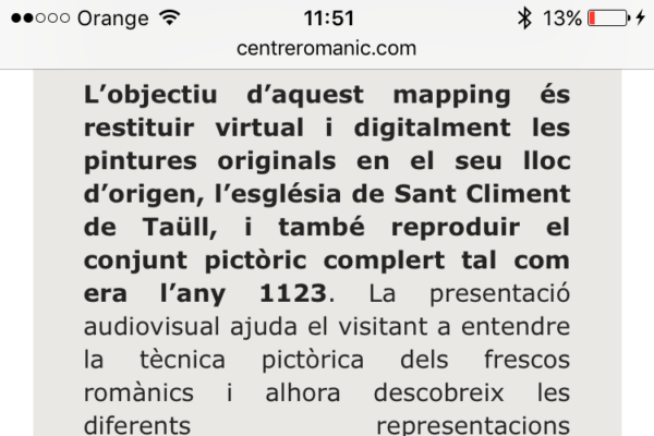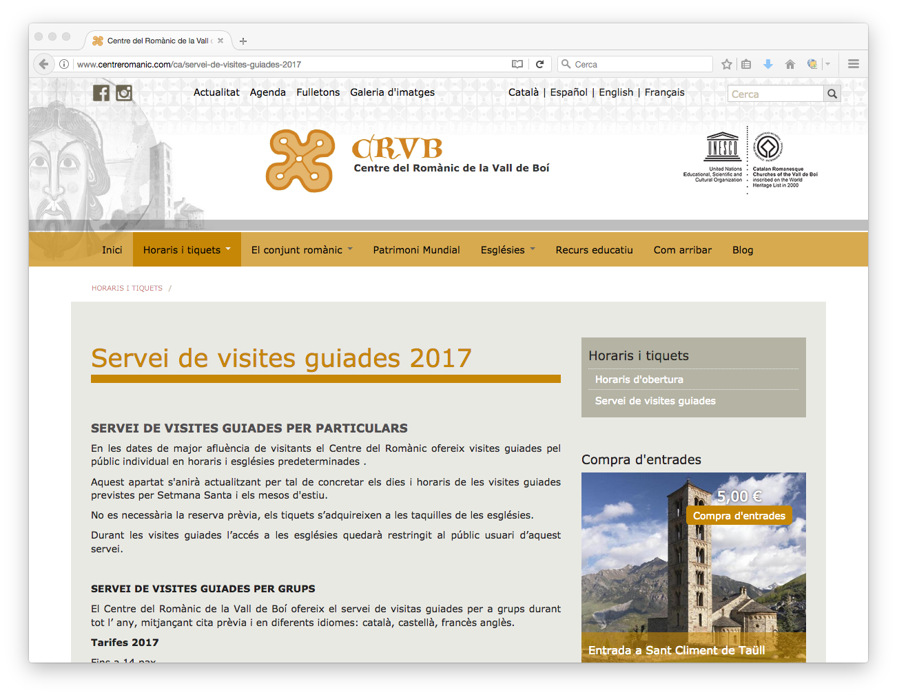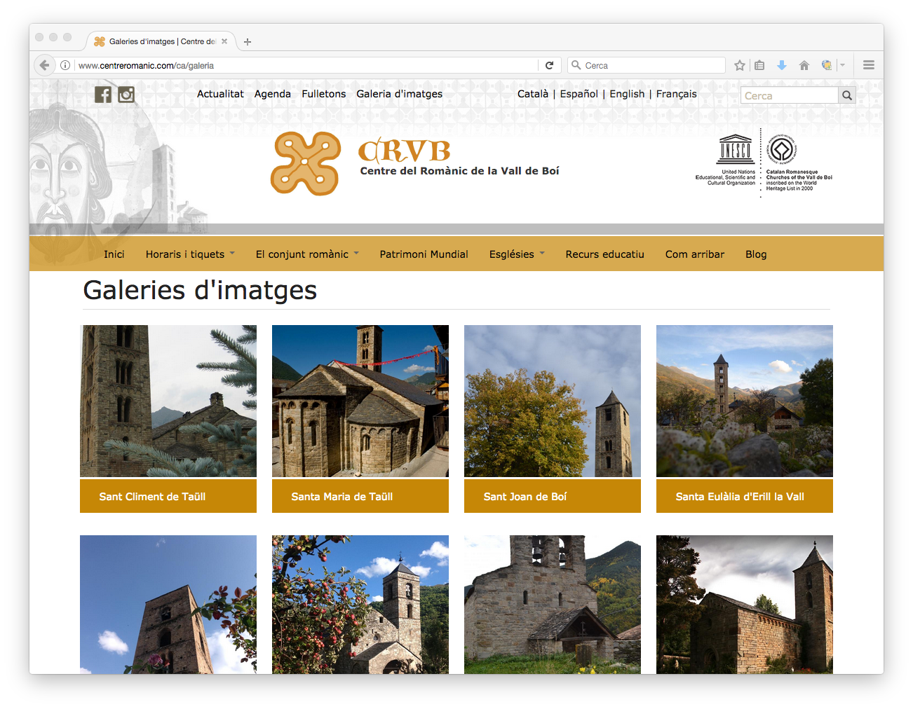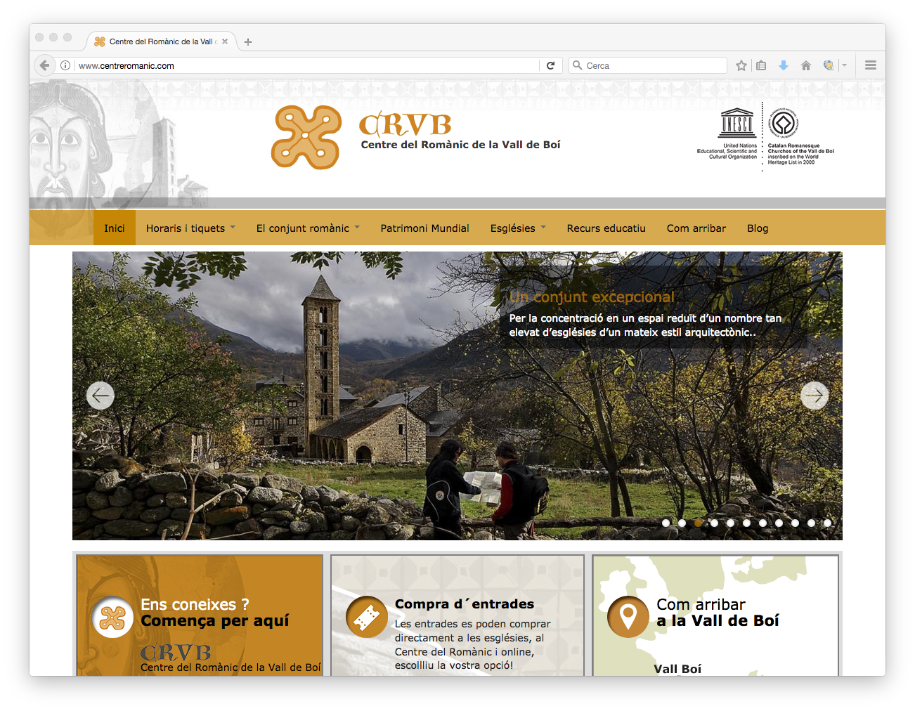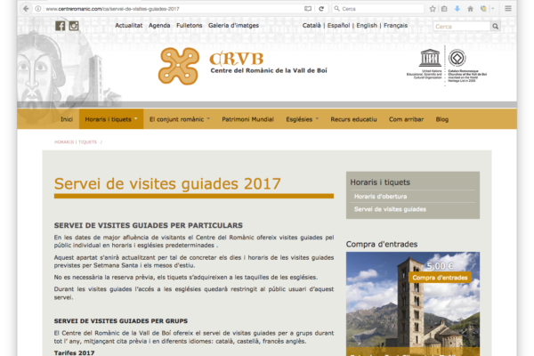 La web reúne información sobre el conjunto románico de la Vall de Boí, declarado Patrimonio de la UNESCO. Aparte de los contenidos informativos y de actualidad, en los que se combinan textos, imágenes, audiovisuales y mapas de geolocalización, la web también permite la reserva y compra de entradas online mediante la integración con la herramienta Planyo. Todos los contenidos, así como la definición de los productos turísticos que se ponen a la venta, son gestionados de manera independiente por el equipo del Centro del Románico.