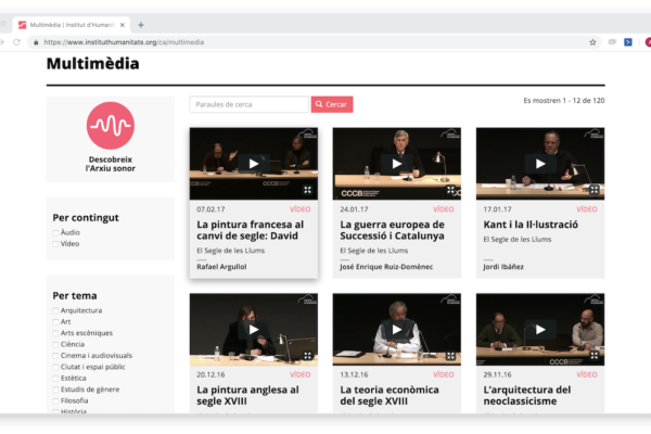 Por otra parte, la web incorpora también un extenso archivo de los cursos realizados, los ponentes que han participado en ellos y los documentos audiovisuales generados. Todos estos recursos se interrelacionan y se pueden buscar de manera fácil mediante el buscador desarrollado en la web.