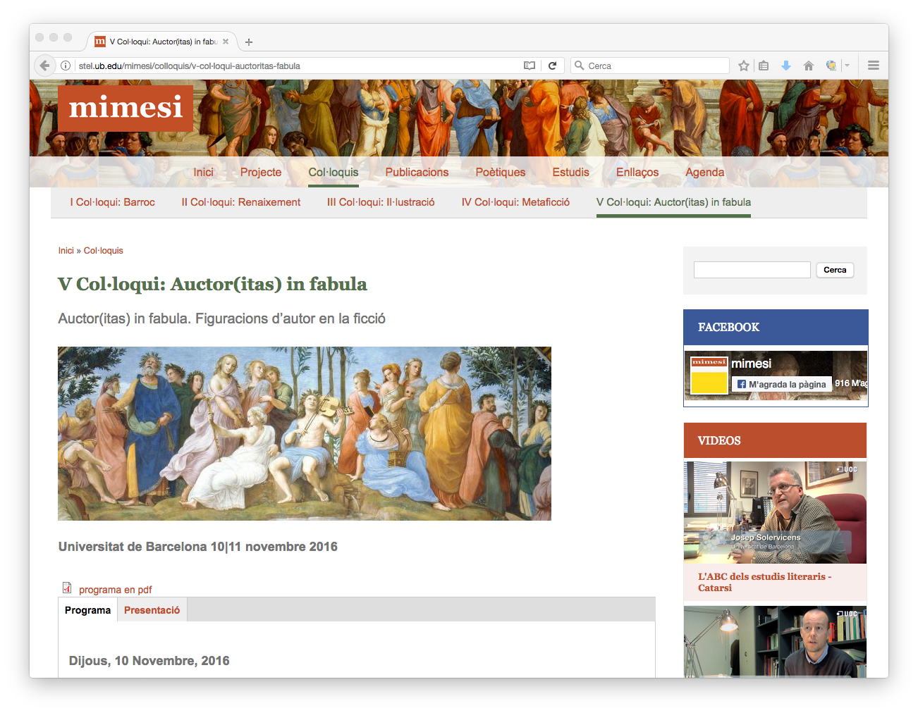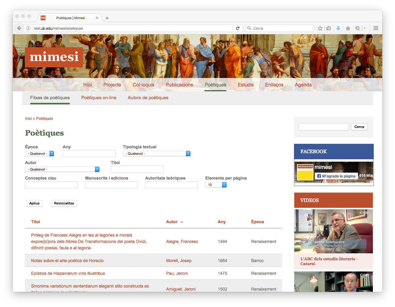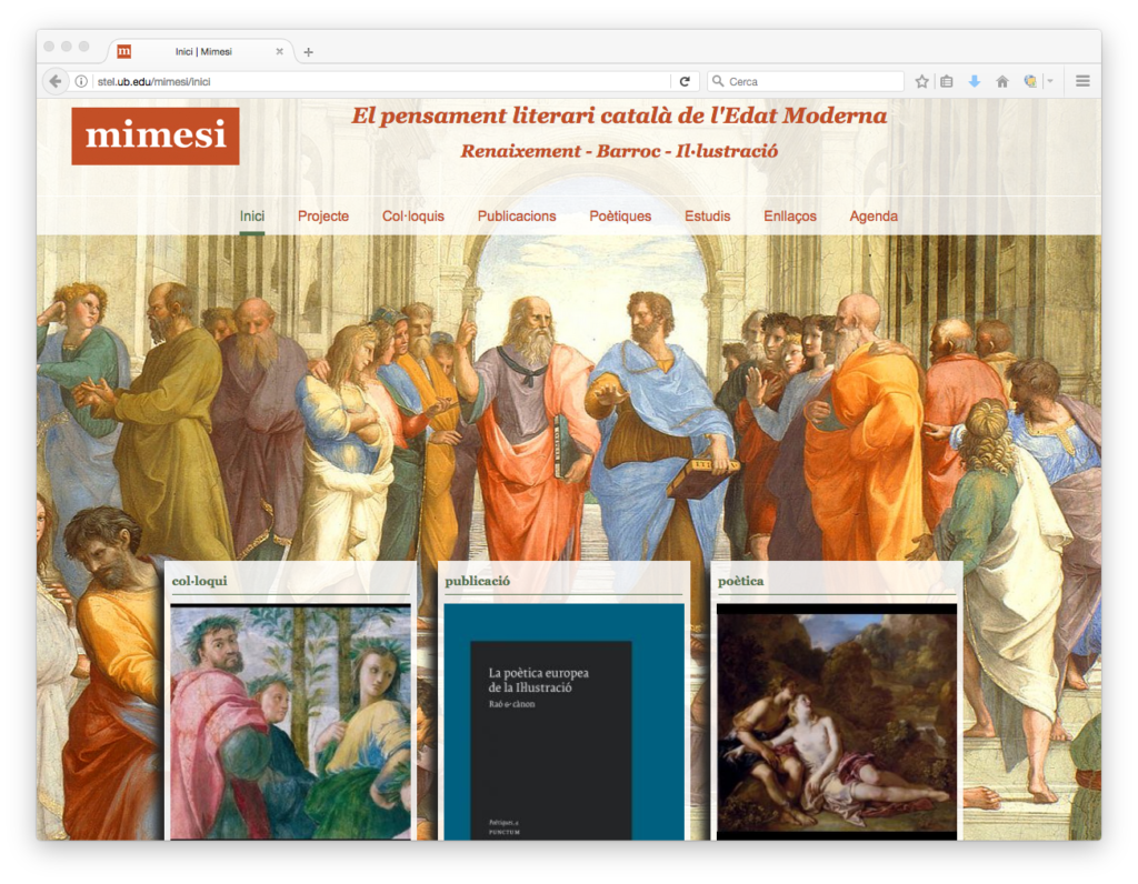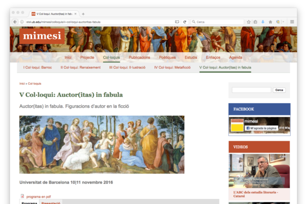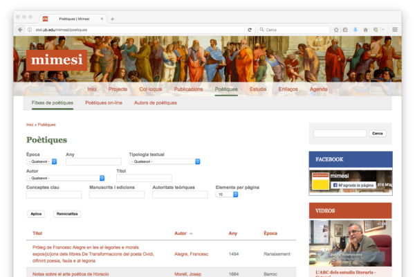 Esta web es un ejemplo de cómo un gestor de contenidos hace fácil el cumplimiento de necesidades en cierta medida complejas. La web de Mimesis, más allá de servir para presentar el proyecto y el grupo de investigación, permite una ágil gestión de una agenda de eventos, un espacio de recopilación de coloquios, un catálogo de publicaciones y otros estudios… contenidos que por su tipología merecen fichas de información específicas para cada caso. Además, el apartado Poéticas de Mimesi está dotado de una precisa herramienta de búsqueda que tiene en cuenta numerosas variables, y que permite a los usuarios encontrar y consultar de manera sencilla lo que buscan.