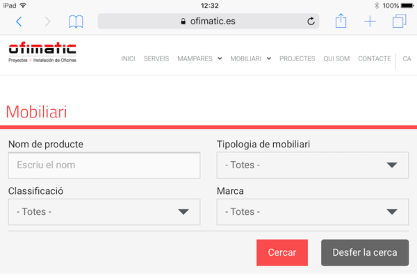 Como elemento destacado, la web incorpora un buscador de productos muy funcional gracias a los diferentes criterios de filtrado configurados. Aparte, cada producto dispone de diferentes formularios de petición de información.