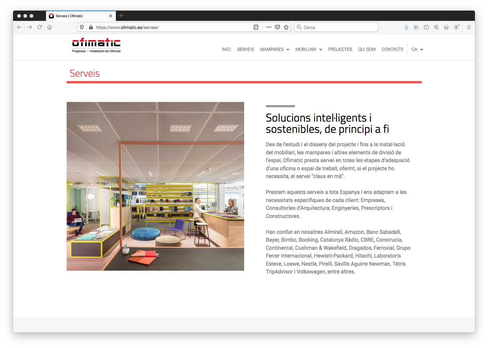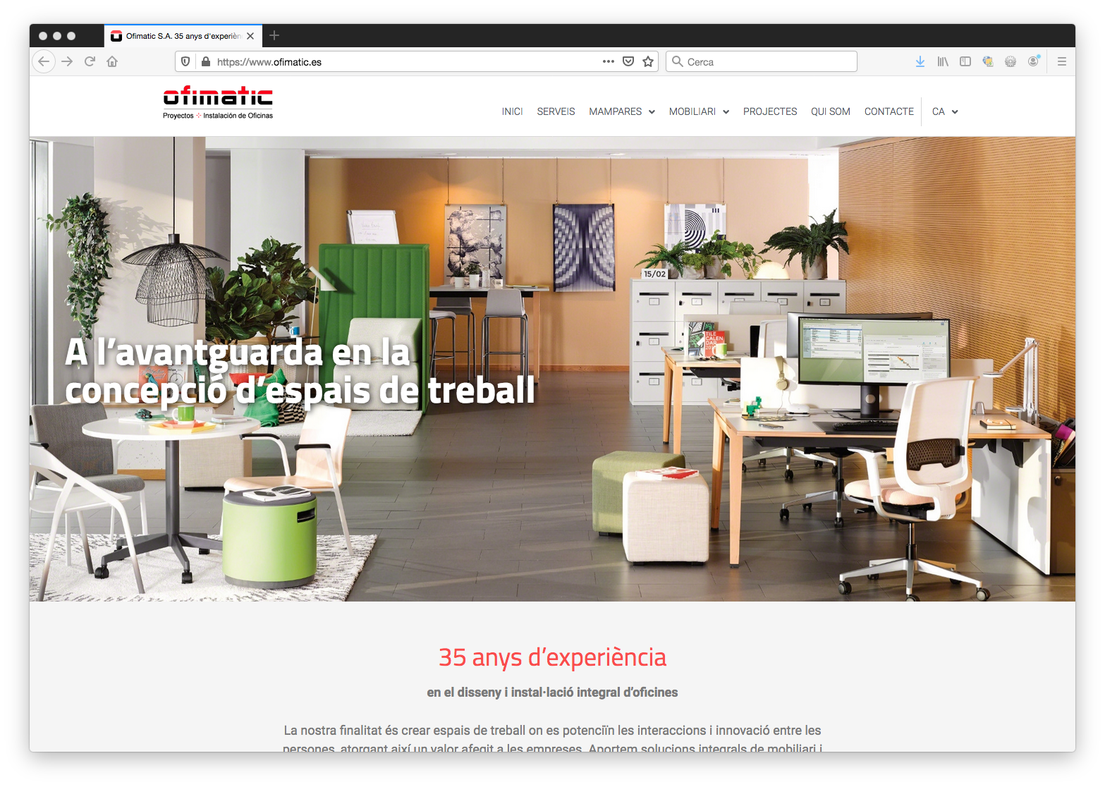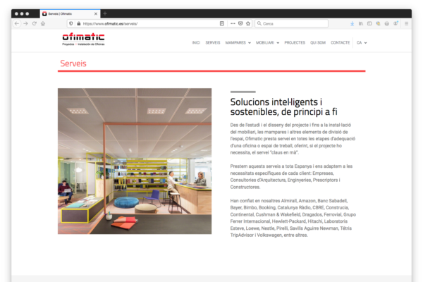 Ofimatic es una empresa con más de 35 años de experiencia en el diseño e instalación integral de oficinas, caracterizada por estar siempre atenta a las nuevas tendencias en diseño y funcionalidad. En este sentido, la web debía ser capaz de reflejar esta filosofía.