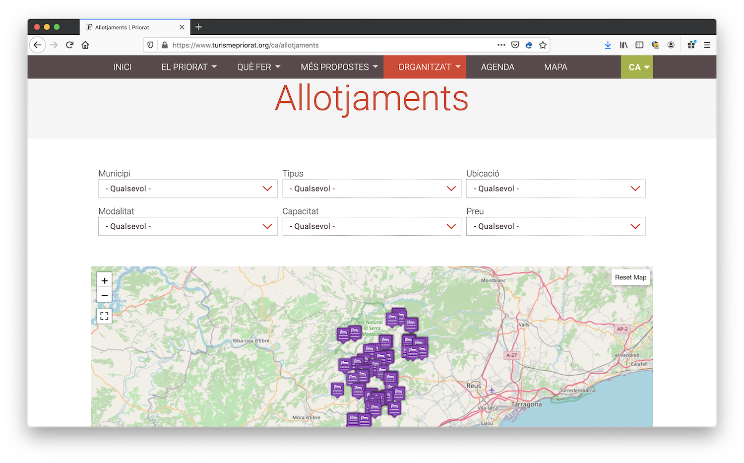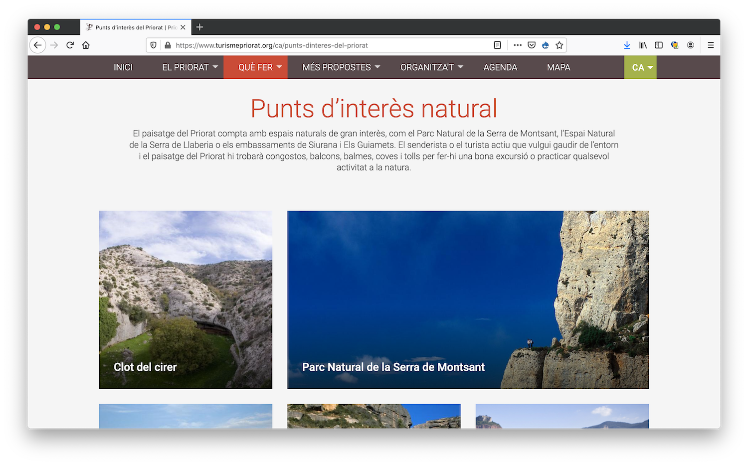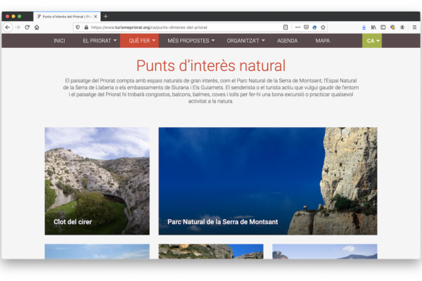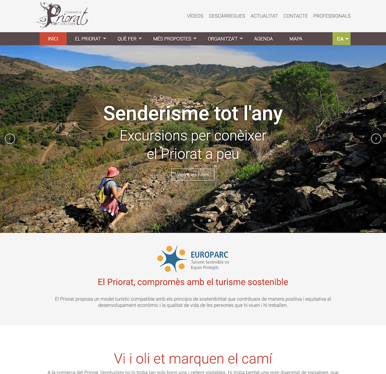 La web de la Oficina de Turismo del Consell Comarcal del Priorat se ha convertido en una referencia en el sector en Cataluña. La idea siempre siempre ha sido que la web invitara a una navegación muy horizontal, de manera que los usuarios visualicen y localicen fluidamente los contenidos relacionados que son de su interés.