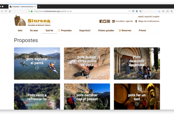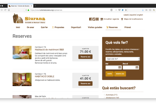 Turisme Siurana és el portal turístic d’una zona emblemàtica de Catalunya. El web no només presenta els principals atractius de la destinació, sinó que permet als allotjaments, restaurants, cellers i la resta d’empreses que hi operen comercialitzar els seus productes turístics mitjançant Planyo, una eina en la qual som experts.